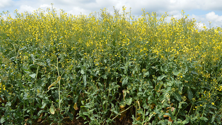 OSR variety PT303 © MAG/David Jones A sclerotinia-tolerant oilseed rape variety outyielded others on an Essex farm and was also grown at a lower cost, so its area will be expanded next season.