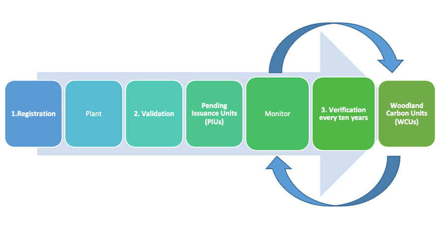 *Diagram shows the process for a woodland carbon scheme delivered under the Woodland Carbon Code.