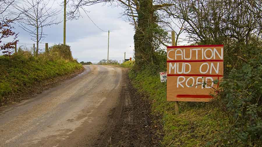 © Nicholas and Sherry Lu Aldridge/FLPA / imageBROKER/REX Shutterstock Motorists are being urged to keep an eye out for muddy roads and report them to the police, who will then consider whether to prosecute the farmer responsible.