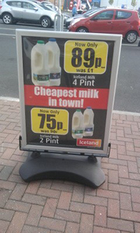 Meanwhile, Iceland was offering customers who shopped online the chance to buy two four-pint cartons at ÂŁ1.60.