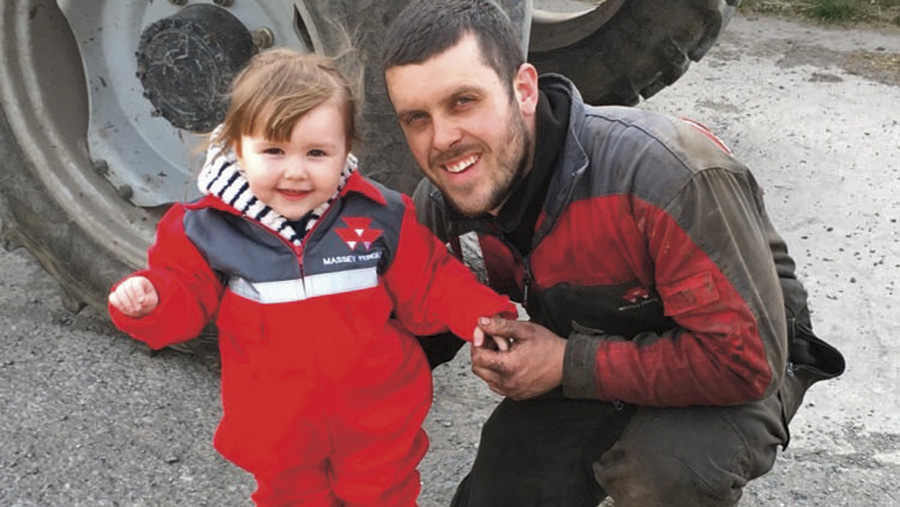 Like father, like daughter: Two-year-old Mali Ann helping dad out at Pontllyfni in North Wales.