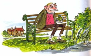 You’ll see him sitting by the pond between 7am and 3pm every day. You could set your watch by him. Seven days a week, 365 days a year, rain or shine, he’ll be on that bench, staring inanely ahead.