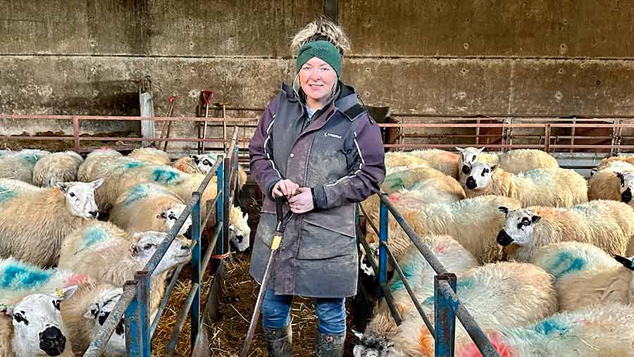 In partnership with her parents, Huw and Eleri, she runs a flock of around 960 speckle-faced, Welsh Tregaron type and crossbred ewes, selling the finished lambs at the local livestock market.