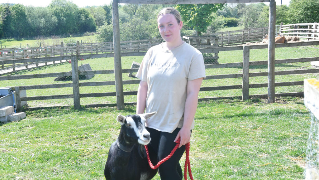 Neive with one of the college’s pedigree goats © Neive Burke