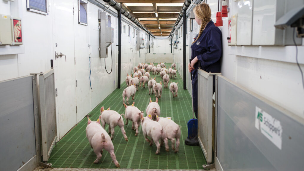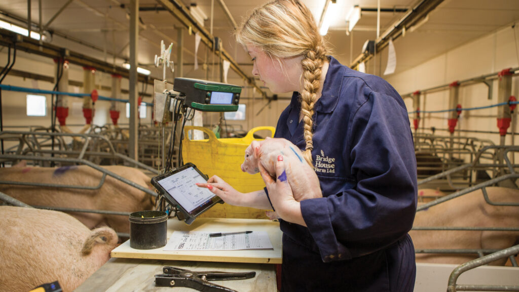 Maddie Cox © Charlie Thompson Routinely weighing a batch of pigs helps improve farm efficiency and creates a business that is attractive to staff, ultimately leading to better pig welfare and more profit.