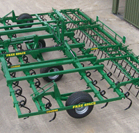 A level finish is ensured by a rear Reekie-style tine section and hydraulic wings lock for 3m wide transporting mode. Trailed models are available from 6-8m and linkage mounted 5-7m wide.