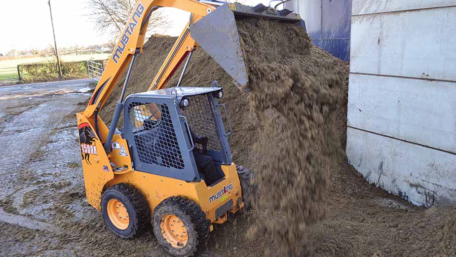Operating capacity ranges from 612kg for the R135 to 748kg for the R165. This can be increased by around 70kg where a rear counterweight “bumper” is fitted, explains Gehl. Lift height is 2.78m for the R135 to 3.02m for the R165 – sufficient to get a big bale into many diet feeders. Pump flow rates range from 64-71.4litres/min depending on the model.