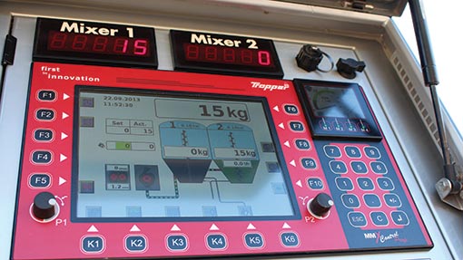 The MMX Control interface has a separate weight display for each mixing chamber, so it is possible to mix two rations at the same time.