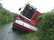 These pictures show a pea viner that went off a bank when one of the wheels just caught on the edge of a ditch.