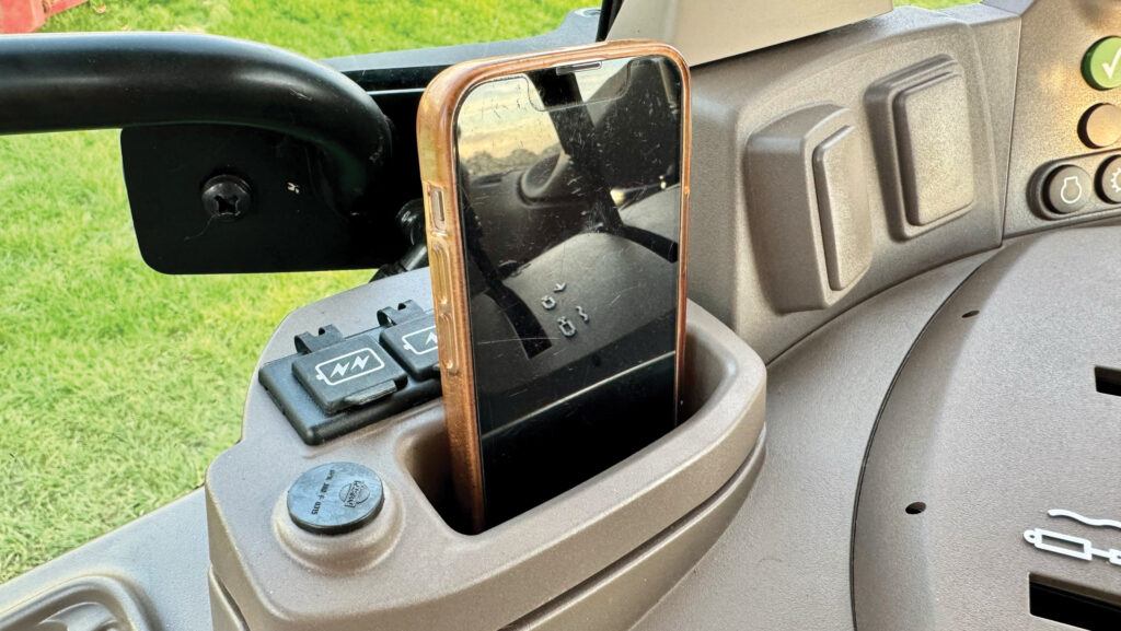Among them, rear linkage and pto settings, engine droop and cruise speeds, shuttle aggressivity, work light setup and air conditioning adjustments – all easy to find, with few layers to navigate.