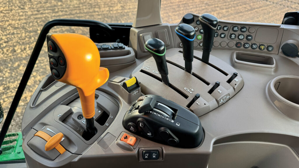According to Deere, the most common upgrades are a bigger hydraulic pump, upping output from 114 litres/min to match the 155 litres of the Rs (£907), mechanical cab suspension (£1,275) and a premium seat (£1,977). Clearly some luxuries are sacrosanct.