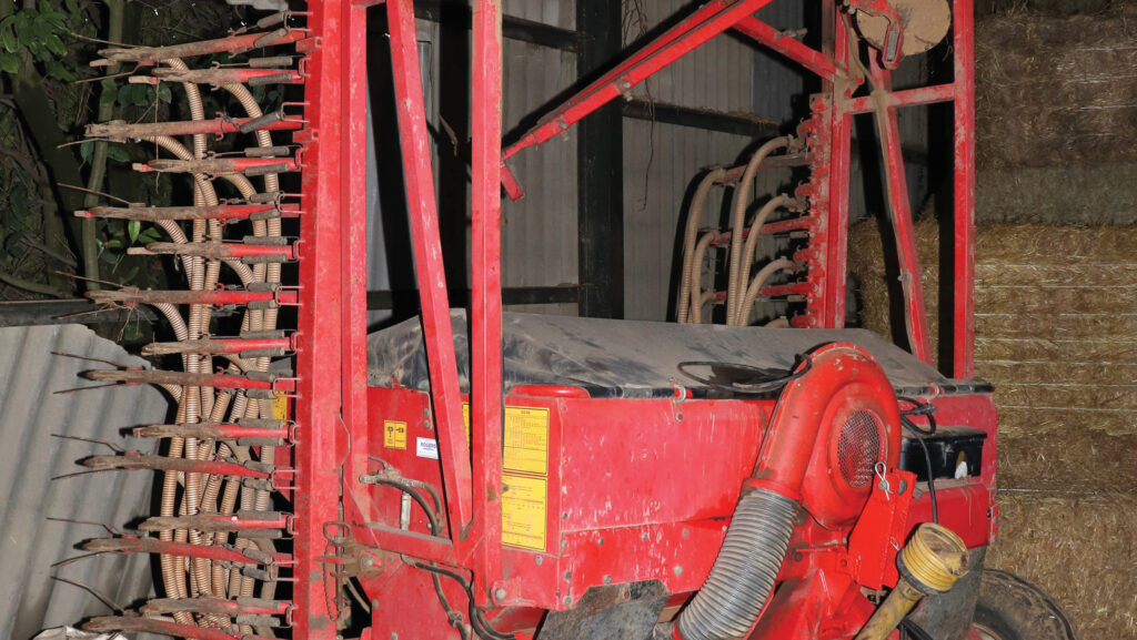 - Grass kit: 9.5m JD butterfly mower (F310 front/R950R rear), Krone Swadro TC1370 four-rotor rake, TC 930 two-rotor rake, Krone Vendro 820 tedder x2, McHale 998 bale wrapper and Spearhead topper