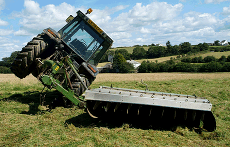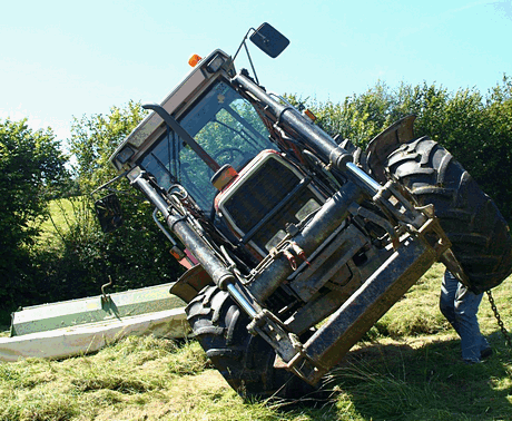 This Massey Ferguson tipped on its side as the mower is was powering stalled and grass heaped up underneath it.