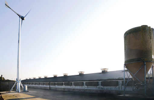 In many ways the sites used in broiler production are well suited to installing turbines as there is ample space between the sheds.