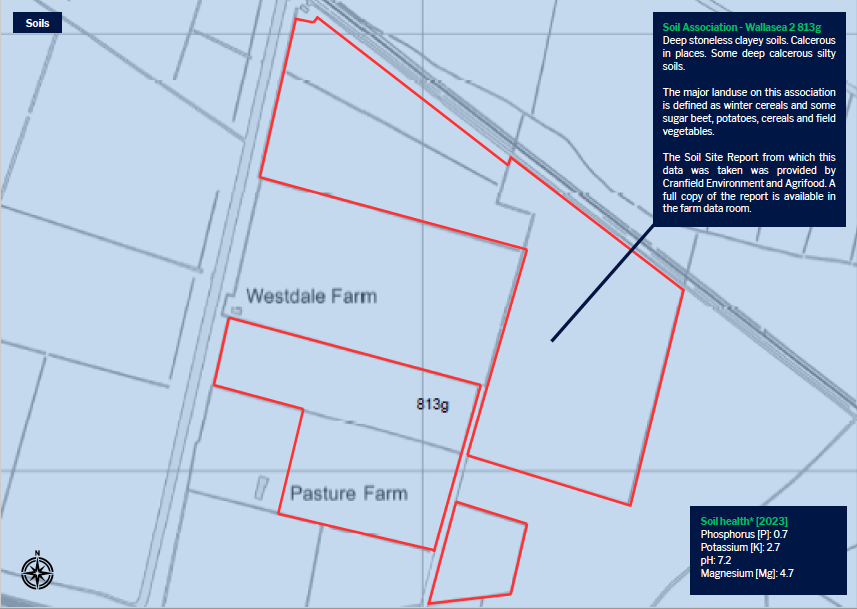 The soil information provided is based on testing carried out in preceding years – the averages stated are weighted across the farms. Details are available in the farm data room.