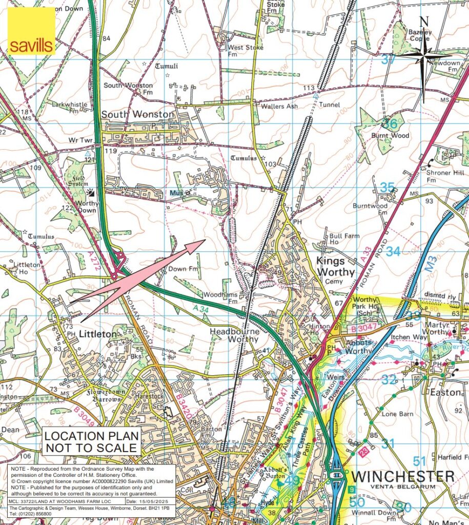The land at Woodhams Farm is located between Kings Worthy and Worthy Down. The land is served by two vehicular bridges, accessed along a Byway Open to All Traffic (BOAT) through the popular village of Kings Worthy, just off the A33.
