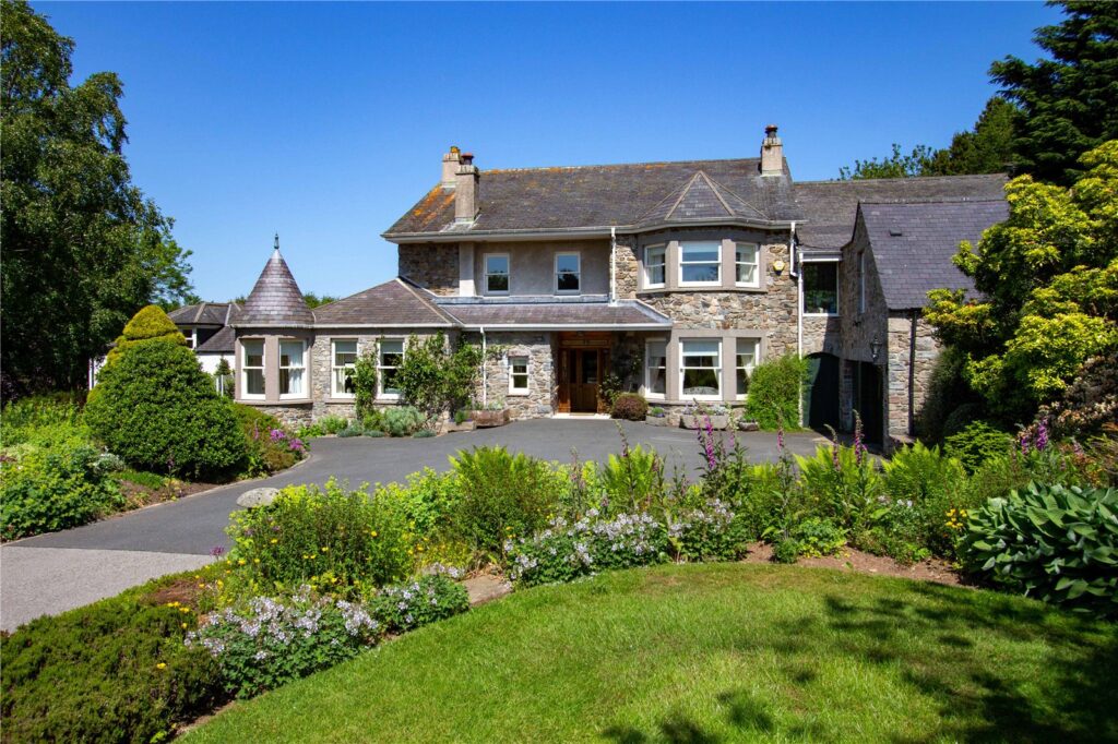 Lot 1: Logie House (incorporating Honeyhive Cottage and indoor swimming pool), the walled garden, grounds, tennis court, Garden Cottage, stables and adjacent paddocks extending in total to about 19.62 acres;