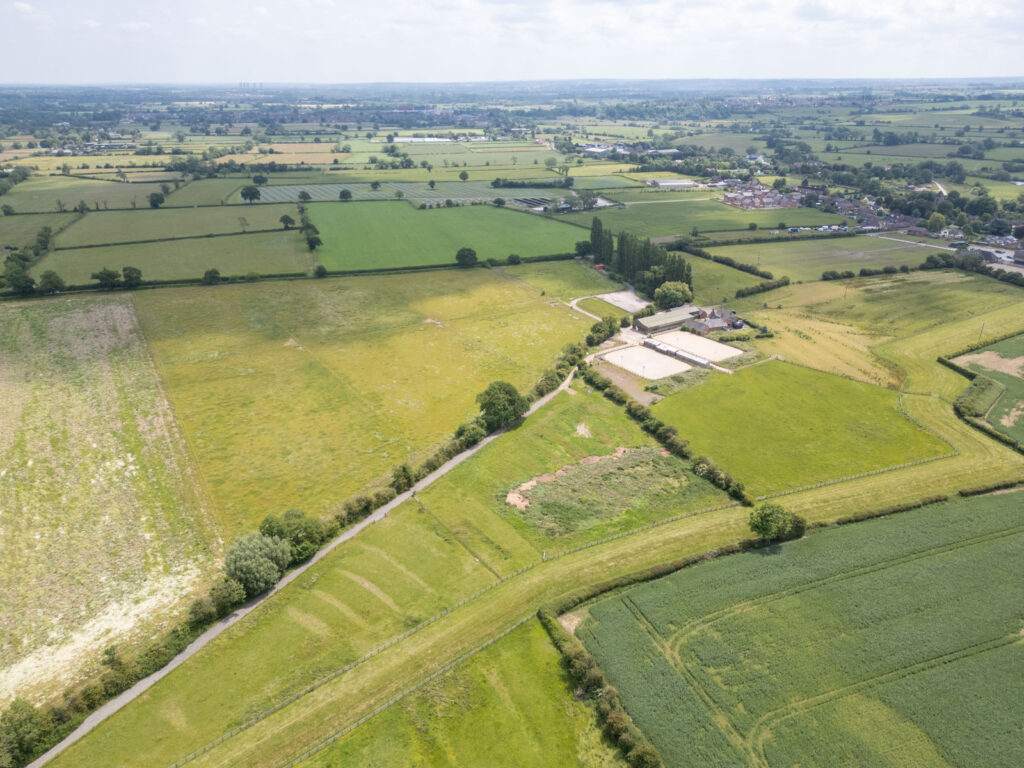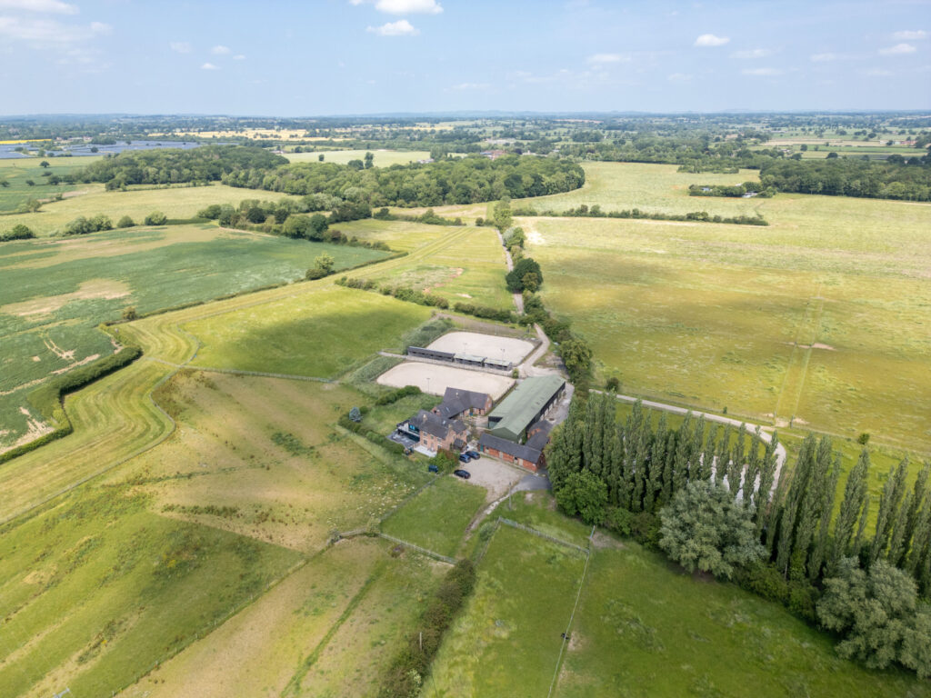 There are seven paddocks to the north of the main entrance, all enclosed with well-maintained post-and-rail fencing. These are laid to grass, of practical, regular shape, and served by a central track for ease of access. The paddock closest to the entrance also benefits from direct access to the main yard and arenas.